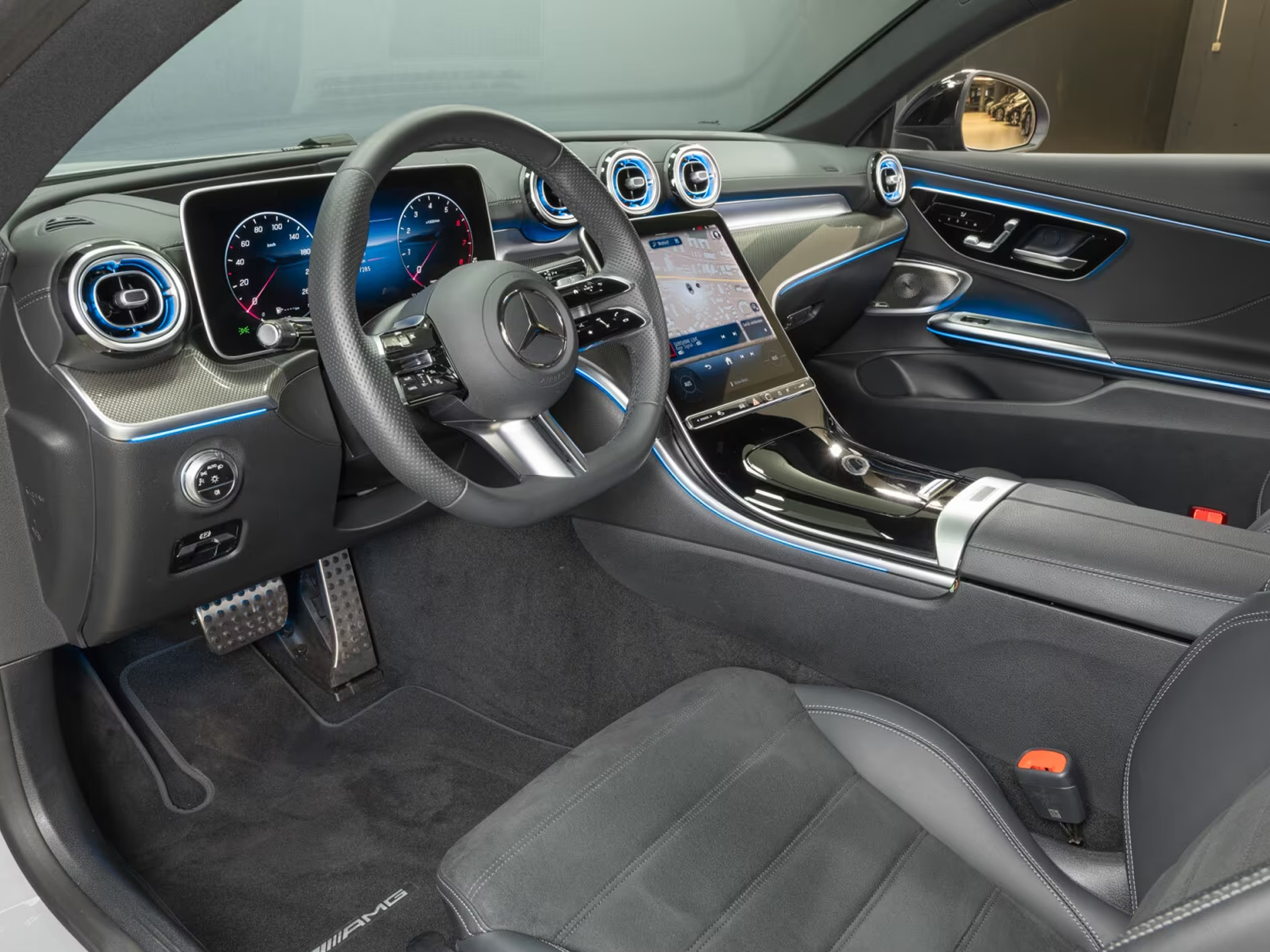 Elegant coupé-design med AMG-detaljer og perfekt aerodynamik.