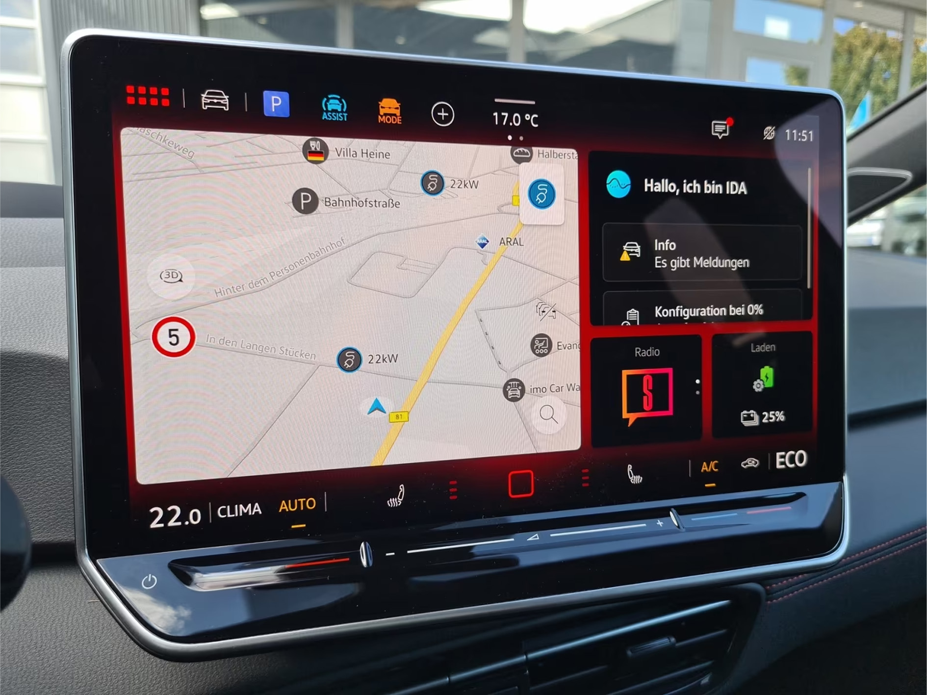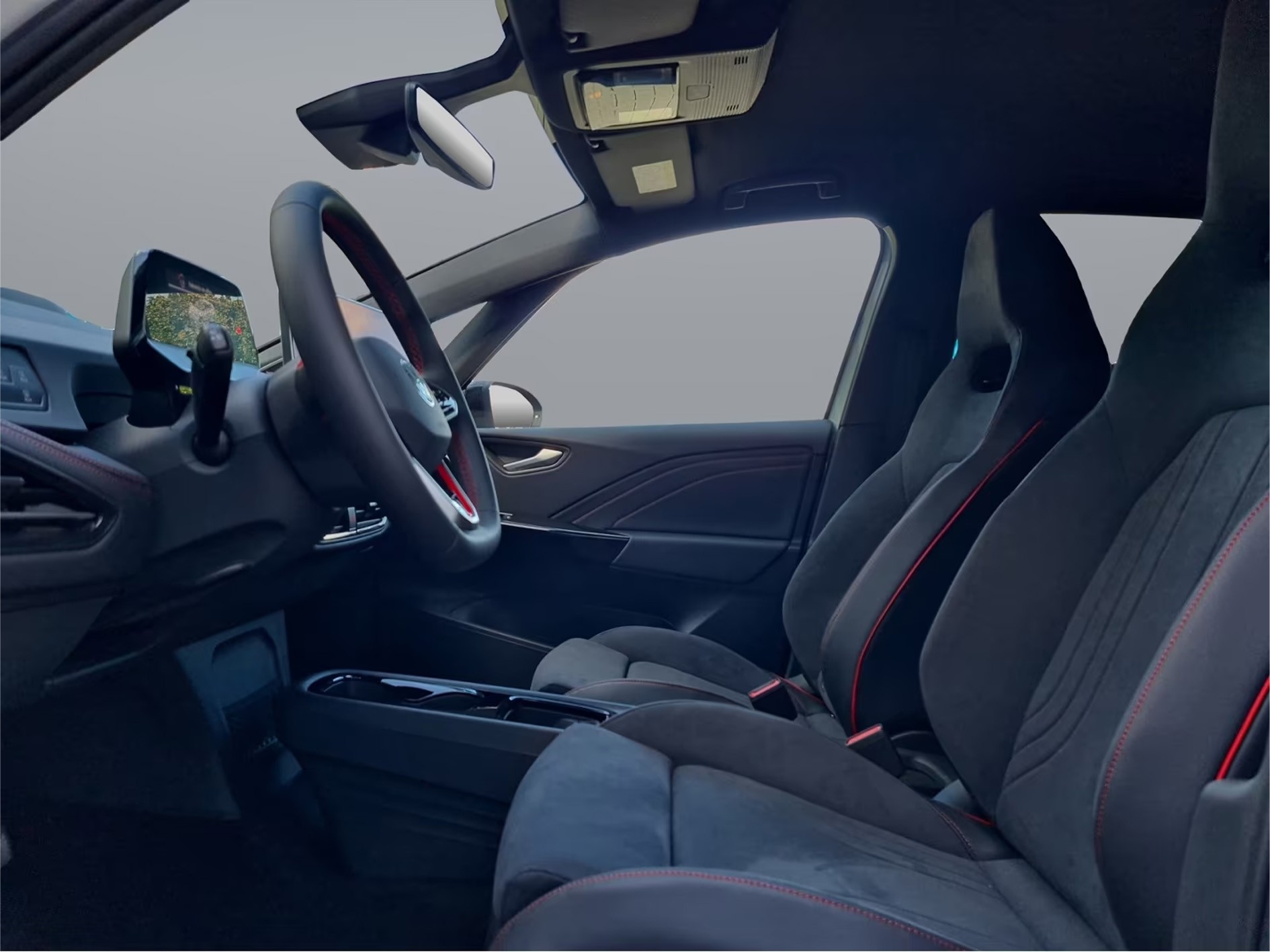 Kabine med digital cockpit, premium finish og futuristisk interiør.